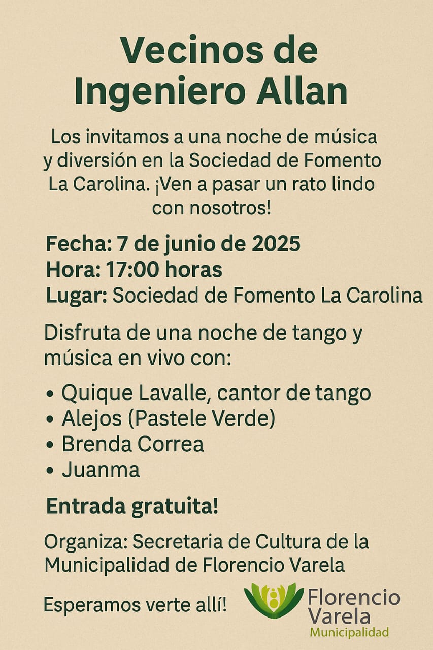 Difundimos la invitación a la actividad cultural con artistas locales en la Sociedad de Fomento de La Carolina.