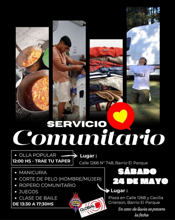 Desde hace más de 10 años, la Iglesia de Dios de la Profecía (IDP), liderada por el Pastor Jorge Brandan, participa junto a otras iglesias del mundo en el Global Serve Day, o Día Mundial del Servicio. Este evento internacional busca servir a las comunidades con acciones concretas, totalmente gratuitas y sin fines de lucro. En Ingeniero Allan, el corazón de la jornada estará en la plaza ubicada sobre Cecilia Grierson (Calle 1213) entre Calle 1266 y Calle 1268, frente a la Sociedad de Fomento de barrio El Parque y el Club Deportivo Ave Fénix.